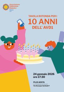 Sabato 24 gennaio 2026, dalle 17:30 alle 19:30, presso il PLUS AOSTA, parteciperemo all’evento dell’Associazione Valdostana Diabetici Tipo 1 – ODV (AVD1) che celebra dieci anni di impegno a fianco di bambini, ragazzi e famiglie che convivono con il diabete di tipo 1.
